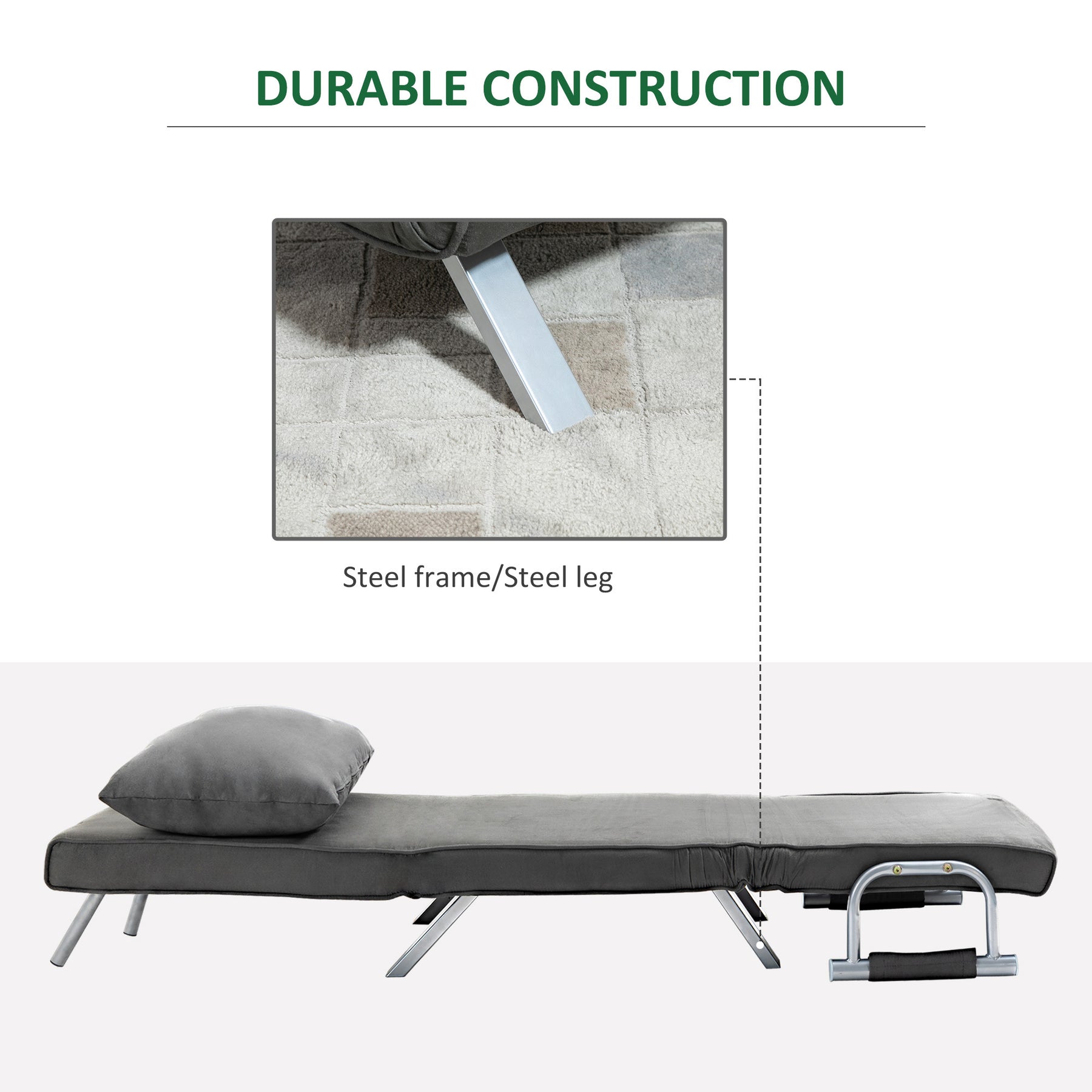 Convertible Sofa Bed 5 Position Folding Sleeper Chair Pillow Steel Frame Dark Grey