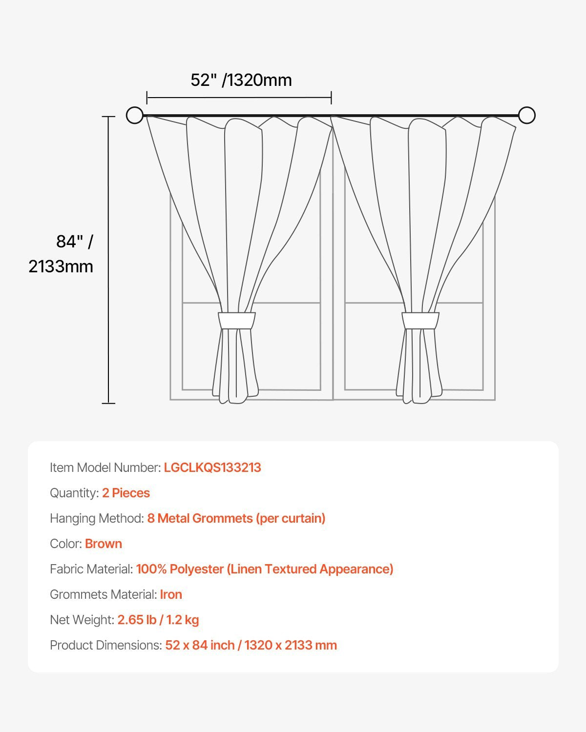 Natural Linen Curtains 52 X 84 Inch 2 Panels Set Grommet Light Filtering Thick