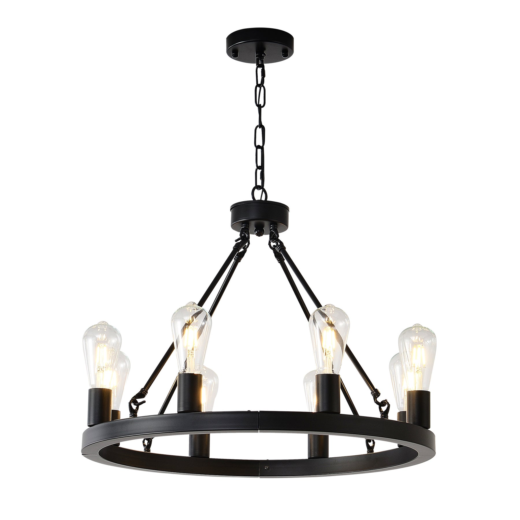 8-Light No Bulbs Matte Black Wagon Wheel Chandelier Farmhouse Modern Small Round Chandelier For Living Room Kitchen Island Foyer Hallway Entryway Bedroom Dining Room Light Fixture Ceiling Hanging