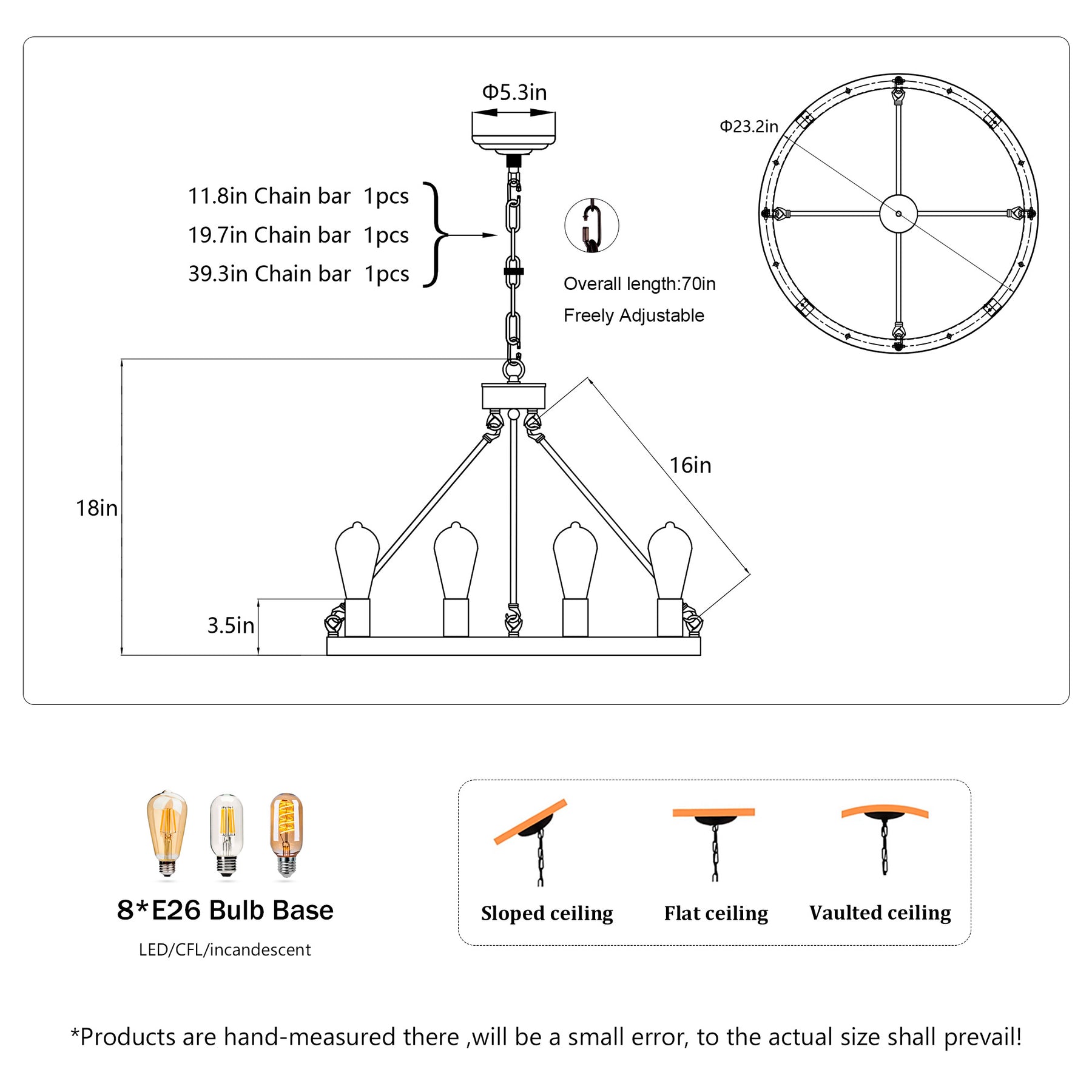 Product Name:8-Light (No Bulbs) Matte Black Wagon Wheel Chandelier Farmhouse Modern Small Round Chandelier for Living Room Kitchen Island Foyer Hallway Entryway Bedroom Dining Room Light Fixture Ceiling Hanging