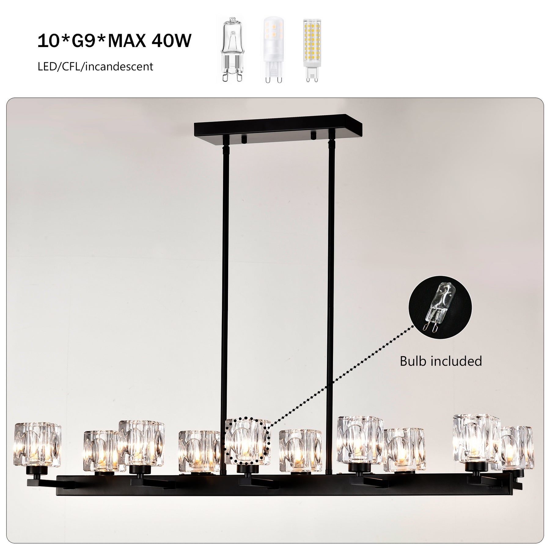 Product Name:Chandelier for Dining Room, 10-Light Black Farmhouse Linear Pendant Light Fixture, Modern Crystal Hanging Lighting Chandelier for Kitchen Island, Bar, Long Table, G9 Bulb(10*G9*MAX 40W)