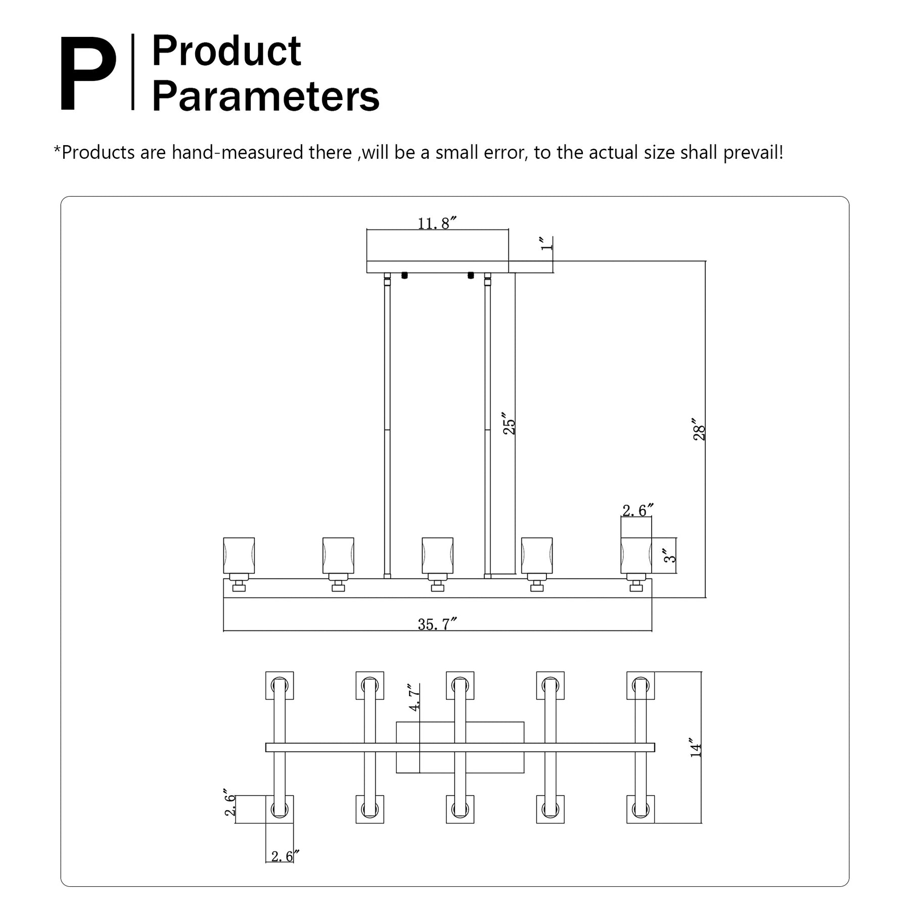 - Wide Application -- This hanging crystal chandeliers combines classic and modern style, recommended for indoor decoration, such as large dining room, kitchen island, living room, bar area, etc. The chandelier light fixture dimension is L35.67" x W14.02", weight is 20.24LB.