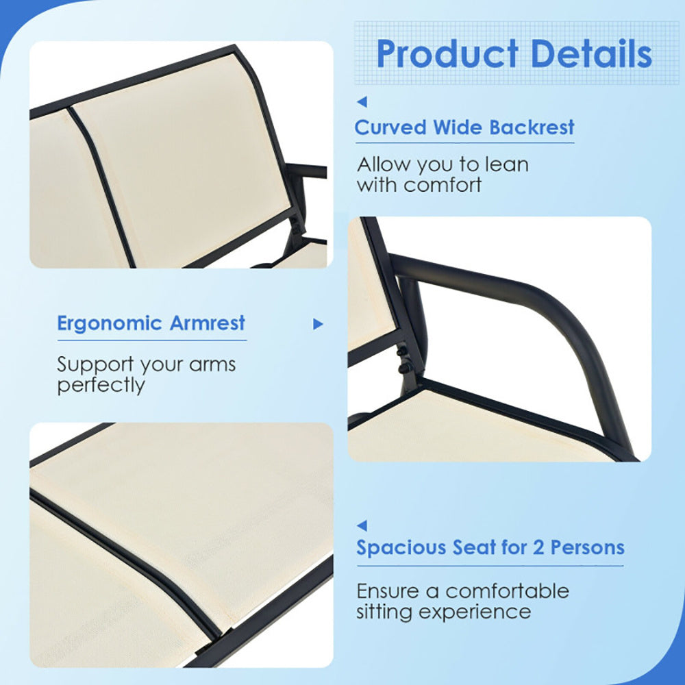The back and armrest of this rocking loveseat have an ergonomic curve which offers extra comfort and relaxation for your body. This swing chair can ergonomically fit your back spine at the perfect angle. The armrests on both sides allow your hands to rest and grip. You won't feel tired after sitting on this chair for a long time.